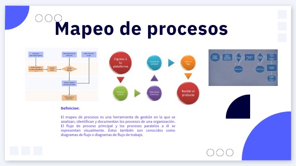 Definicion: El mapeo de procesos es una herramienta de gestión en la que se analizan, identifican y documentan los procesos de una organización. El flujo de proceso principal y los procesos paralelos a él se representan visualmente. Éstos también son conocidos como diagramas de flujo o diagramas de flujo de trabajo.