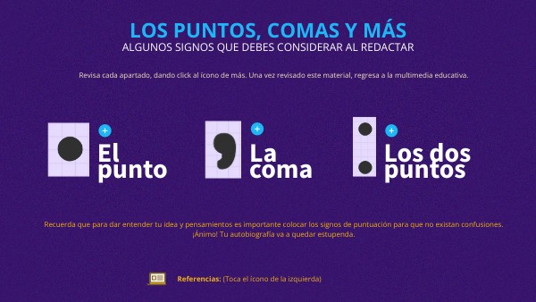 Revisa cada apartado, dando click al ícono de más. Una vez revisado este material, regresa a la multimedia educativa.