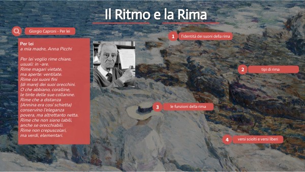 Per lei a mia madre, Anna Picchi Per lei voglio rime chiare, usuali: in -are. Rime magari vietate, ma aperte: ventilate. Rime coi suoni fini (di mare) dei suoi orecchini. O che abbiano, coralline, le tinte delle sue collanine. Rime che a distanza (Annina era cosí schietta) conservino l'eleganza povera, ma altrettanto netta. Rime che non siano labili, anche se orecchiabili. Rime non crepuscolari, ma verdi, elementari.
