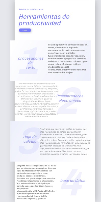 Una presentación electrónica es un documento que se integra con un conjunto de elementos tales como: texto, imágenes, tablas, formas, audios, videos u otros, para presentar información organizada y atractiva con la finalidad de captar la atención del usuario a quien va dirigida.Canva.Visme.Apple Keynote.Swipe.ZohoShow.SlideDog.permiten crear de una manera rápida ,llamativa y profesional contienen laminas o diapositivas digitales donde se pueden insertar textos,imágenes,gráficos,tablas ,y elementos multimedia