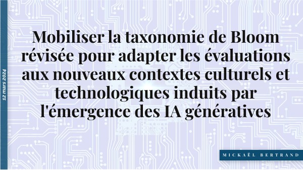 Mobiliser la taxonomie de Bloom révisée pour adapter les évaluations aux nouveaux contextes culturels et technologiques induits par l'émergence des IA génératives