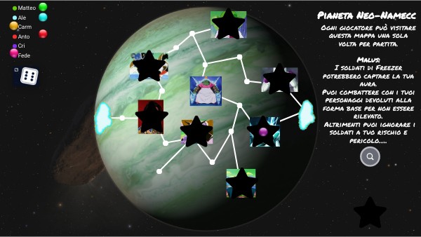 Ogni giocatore può visitare questa mappa una sola volta per partita. Malus: I soldati di Freezer potrebbero captare la tua aura. Puoi combattere con i tuoi personaggi devoluti alla forma base per non essere rilevato. Altrimenti puoi ignorare i soldati a tuo rischio e pericolo.....
