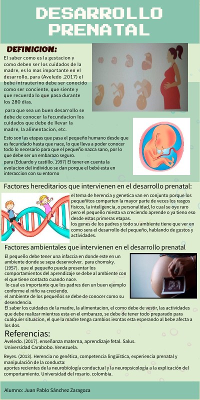 El saber como es la gestacion y como deben ser los cuidados de la madre, es lo mas importante en el desarrollo, para (Aveledo .2017) el bebe intrauterino debe ser conocido como ser conciente, que siente y que recuerda lo que pasa durante los 280 dias. para que sea un buen desarrollo se debe de conocer la fecundacion los cuidados que debe de llevar la madre, la alimentacion, etc.