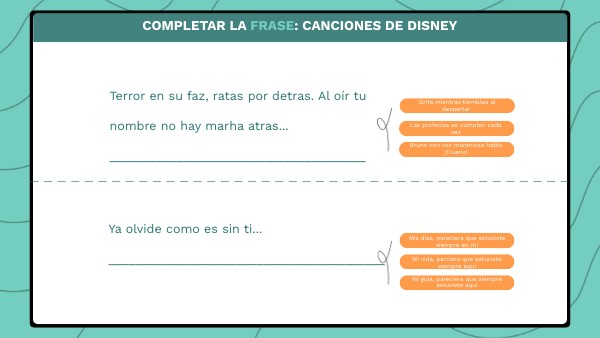Completar la frase: canciones de disney