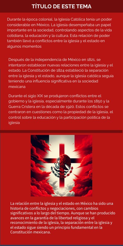 Durante la época colonial, la Iglesia Católica tenía un poder considerable en México, La iglesia desempeñaba un papel importante en la sociedad, controlando aspectos de la vida cotidiana, la educación y la cultura. Esta relación de poder también llevó a conflictos entre la iglesia y el estado en algunos momentos