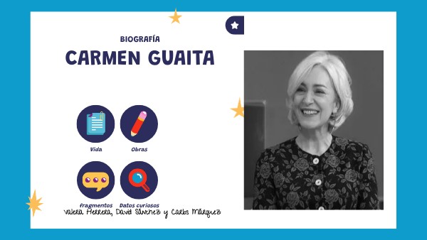 •"Esta escritora y actriz jerezana, licenciada en Comunicación Audiovisual por la Universidad de Sevilla, mostró desde pequeña un gran interés por las diferentes disciplinas artísticas, especialmente por la Literatura y las Artes Escénicas. Con tan sólo catorce años firmó la primera de nueve novelas en su haber, además de varios relatos y poemarios. Entre sus obras cabe destacar Chispa y humo, El último pecado capital, La Señora de Montesco o El baile del escorpión.