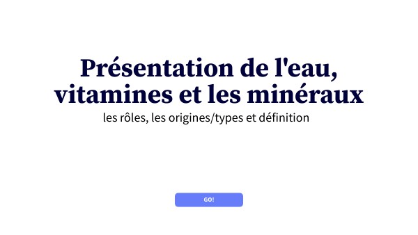 Présentation de l'eau, vitamines et les minéraux