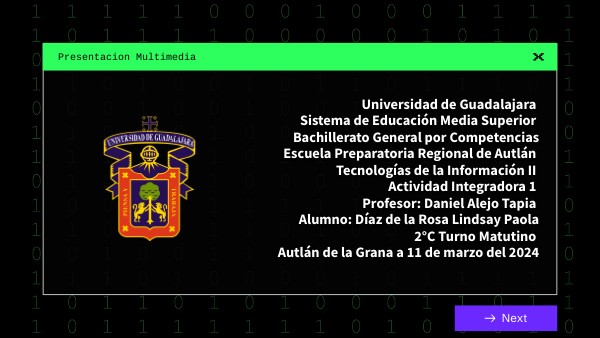 Universidad de Guadalajara Sistema de Educación Media Superior Bachillerato General por Competencias Escuela Preparatoria Regional de Autlán Tecnologías de la Información II Actividad Integradora 1 Profesor: Daniel Alejo Tapia Alumno: Díaz de la Rosa Lindsay Paola 2°C Turno Matutino Autlán de la Grana a 11 de marzo del 2024