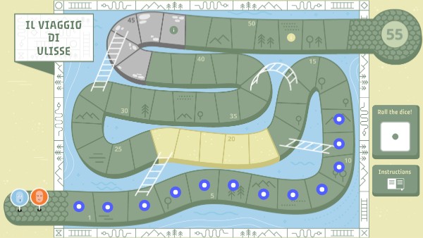 Players start with a token - which represents each of them - in the initial square and take turns rolling the die. The tokens move according to the numbering on the board, in ascending order. If, at the end of a move, a player lands on a square where a ladder begins, they move up it to the square where it ends. If, on the other hand, they land on a square where a snake's tail begins, they move down it to the square where its head ends. If a player rolls a 6, they can move twice in a single turn. If a player rolls three consecutive 6's, they must return to the initial square and cannot move their token until they roll a 6 again. The player who reaches the final square is the winner. There is a variation where, if a player is six or fewer squares away from the end, they must roll precisely the number needed to reach it. If the number rolled exceeds the number of remaining squares, the player cannot move.
