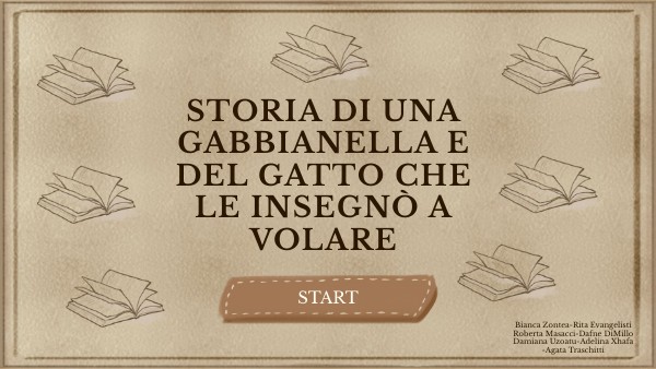 • CAPITOLO 1 tanti stormi di gabbiani che andarono nel Golfo di Biscaglia per costruire i nidi. I maschi costruivano i nidi e le femmine covavano le uova. Una gabbanella di nome Kengah,con i suoi amici gabbiani mettevano il becco sotto l’acqua e quando uscivano in bocca avevano saporose aringhe. Kengah mise la testa sotto l’acqua per la quarta volta e non sentendo le urla del capo gabbiano quando tirò su la testa non vide più nessuno. • CAPITOLO 2 Un bambino si sta preparando lo zaino per andare In vacanza e dureranno quattro settimane. Il suo gatto si chiama Zorba ed è grande e grosso e trovava molto affetto per il bambino e gli doveva la vita, infatti si ricordò di qualche hanno prima Che lo aveva salvato dalla bocca di un pellicano perché Zorba voleva andare al mercato per prendere una testa di pesce ,ma vide un pellicano che lo intrappolò dentro al suo becco , ma un bambino lo aveva visto e aveva preso il pellicano dal collo e lo aveva strozzato.Il bambino partì e lasciò il gatto. • CAPITOLO 3 Kengah era sola nell’oceano e si accorse che era coperta di petrolio e pensò che il suo stormo era troppo lontano per raggiungerlo. Ormai la sua fine era assegnata, sarebbe stata mangiata da un pesce enorme. Maledì tutti gli uomini che pulivano le loro cisterne piene di petrolio. Provò a volare ma fece pochi metri e cadde. Cercò di togliere il petrolio dalla sua coda. Sopportò il dolore delle piume strappate e riprovò a volare. Pensò alla storia che le aveva raccontato un gabbiano delle isole Frisoni. Icaro si era incollato le piume di aquila con la cera e poi si sciolsero. Allora fece la stessa cosa volò verso il sole ma il petrolio non si sciolse. Riconobbe il campanile di san Michele e smise di volare.