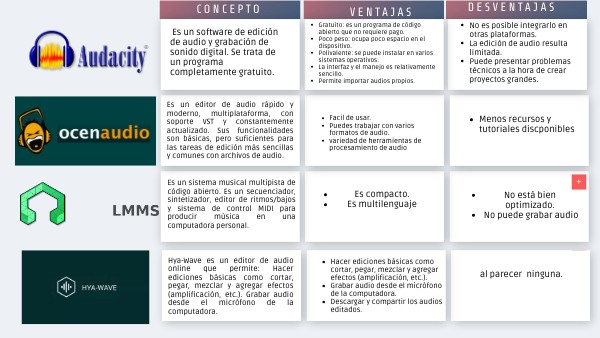 CUADRO COMPARATIVO, CREACION Y EDICION DE AUDIO