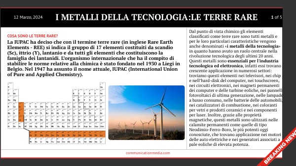 Le terre rare, per questo motivo, rientrano nei cosiddetti “metalli tecnologici”, cioè quei metalli richiesti e utilizzati in ambito tecnologico: altri esempi famosi in questo campo sono l’oro e l’argento (ottimi conduttori, perfetti per i dispositivi elettronici), il palladio (alla base di armature ad alta tecnologia) e l’osmio (molto resistente, usato nell’industria chimica), ma ci sono anche il platino, l’iridio, il rutenio e il rodio. Purtroppo senza terre rare un Paese difficilmente può sperare di competere a livello tecnologico, energetico e militare: già nel 2013 l’Unione Europea aveva inserito questi elementi tra l’elenco dei “materiali grezzi critici per la strategia”. Dunque, esse sono tanto fondamentali per la vita quotidiana quanto necessarie per lo sviluppo.