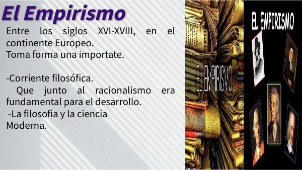 Esta corriente filosófica sostiene la idea de que la unica fuente de conocimento era la experiencia. Pues para el empirismo todo el conocimiento provenía de la experiencia sensorial. Y la razón solo tiene la función de ordenar lógicamente lo que persibiamos de nuestros centidos.