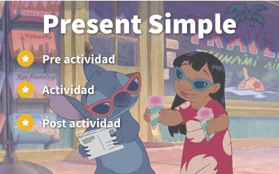 Example: Stitch plays the guitar. Stitch goes to the beach.