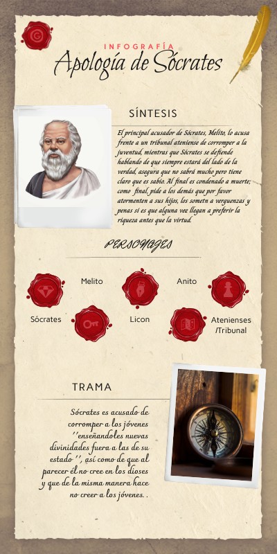 -Actitud de Sócrates al mantener la serenidad ante todo y aceptar el destino -Tener en claro, ser consciente de loq ue uno hizo, tener eso presente ante lo demás -El como un Filósofo que trataba de llevar adelante a los atenienses fue condenado a muerte por ellos mismos -Impotencia hacia los atenienses al observar que no podían ver más allá de las acusaciones, toda la sabiduría que tenía en su defensa Sócrates. La lógica -Conocer un poco acerca de la Filosofía que impartía Sócrates, su forma de razonar y pensar -Aunque varias personas se junten para hacer el mal nunca podrán contra alguien de bien -El asombro al ver esforzarse a alguien por hacer daño innecesario a quien era considerado un gran sabio Filosofo, y aún mas asombro ver que lo haya logrado -El pedir seguir haciendo daño para poder llegar a un resultado favorable, para formar seres llenos de virtud, poder afrontar el destino como un camino más -El cómo es posible que entre en el razonamiento de una persona el acusar a alguien que ´´perjudica a los demás´´acerca de algo que enseña cuando ni esa misma persona en eso cree -Mentalidad. Sabiduría. Aunque traten de poner encima todo lo malo, no te importará ya que sabes cómo eres en realidad, todo lo que has hecho.