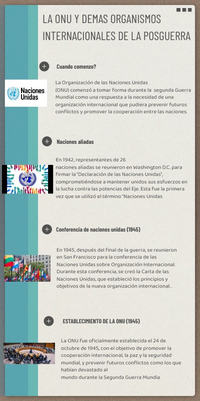 La Organización de las Naciones Unidas(ONU) comenzó a tomar forma durante la segunda Guerra Mundial como una respuesta a la necesidad de una organización internacional que pudiera prevenir futuros conflictos y promover la cooperación entre las naciones.