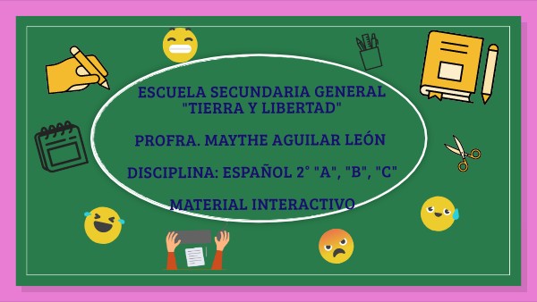 ESCUELA SECUNDARIA GENERAL"TIERRA Y LIBERTAD" PROFRA. MAYTHE AGUILAR LEÓN DISCIPLINA: ESPAÑOL 2° "A", "B", "C" MATERIAL INTERACTIVO