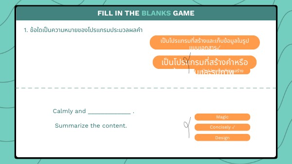 1. ข้อใดเป็นความหมายของโปรแกรมประมวลผลคำ