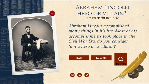 Abraham Lincoln accomplished many things in his life. Most of his accomplishments took place in the Civil War Era, do you consider him a hero or a villain??