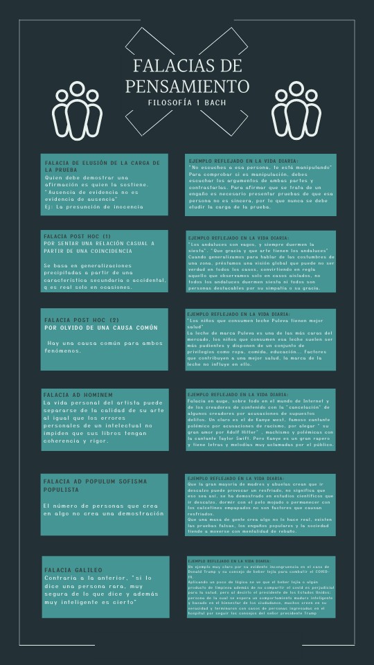 EJEMPLO REFLEJADO EN LA VIDA DIARIA:"No escuches a esa persona, te está manipulando" Para comprobar si es manipulación, debes escuchar los argumentos de ambas partes y contrastarlas. Para afirmar que se trata de un engaño es necesario presentar pruebas de que esa persona no es sincera, por lo que nunca se debe eludir la carga de la prueba.