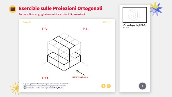 In questa guida cercheremo di capire come passare da un solido rappresentato in assonometria su una griglia isometrica alla rappresentazione sui tre piani di proiezione P.O., P.V., P.L.