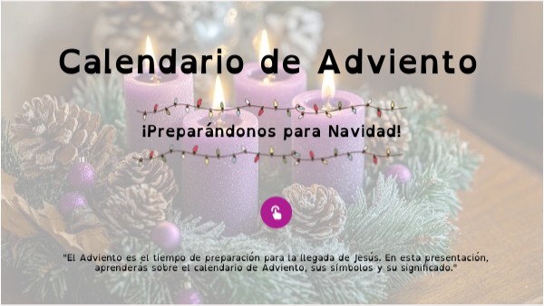 "El Adviento es el tiempo de preparación para la llegada de Jesús. En esta presentación, aprenderás sobre el calendario de Adviento, sus símbolos y su significado."