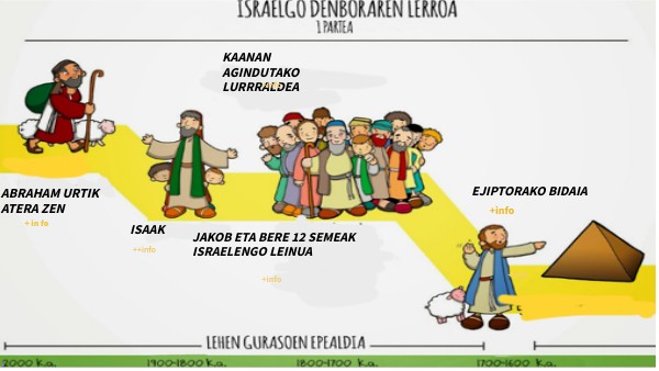 ISAAK: Israelgo herriaren bigarren patriarka da; hebrearren lehen patriarka zen Abrahamen semea, Mesopotamiatik Mediterraneo Sortaldera israel migrazioa gidatu zuena. Isaak ere da Jakob eta Esaùren aita.Ere bere bizitzako momentu oso garrantzitzu bat non Abraham ere ateratzen da, gertatzen da Yahvehek Abrahameri esaten dionean Isaak sakrifikatu egin behar zuela, Abrahamek hori egingo zuen baina aingeru bat gelditu zuen eta arkume bat sakrifikatu zuen Isaaken ordez.