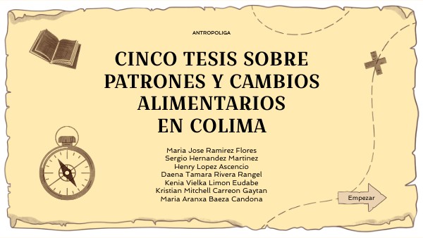 Para recapitular un poco y ver cómo los tiempos han cambiado lo logramos ver que en los años 4000 era muy común ver una dieta arcaica Después fuimos avanzando y vimos que en 1857 Colima tuvo una gran Avance en la apertura del mercado cómo las plantaciones del café y algunos cultivos En las primeras décadas del siglo XX se perduaron las tres medidoras del consumo diario que hasta la fecha una gran porcentaje de nuestra población la sigue respetando que es desayuno, comida y cena