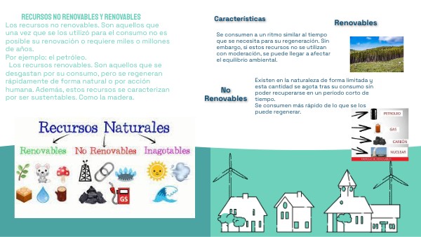 Los recursos no renovables. Son aquellos que una vez que se los utilizó para el consumo no es posible su renovación o requiere miles o millones de años. Por ejemplo: el petróleo. Los recursos renovables. Son aquellos que se desgastan por su consumo, pero se regeneran rápidamente de forma natural o por acción humana. Además, estos recursos se caracterizan por ser sustentables. Como la madera.