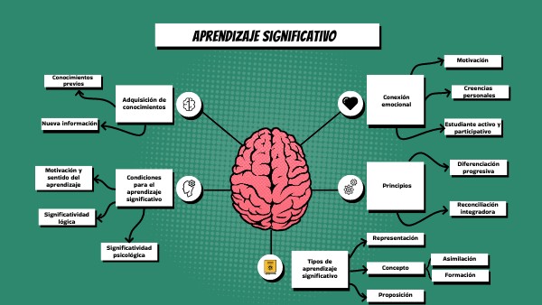 En este mapa mental se abordarán los conceptos relacionados al aprendizaje significativo y su importancia en la educación.
