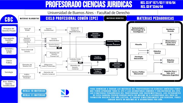 Para comenzar a cursar las materias del Profesorado en Ciencias Jurídicas tenes que tener aprobado todo el CPC y las asignaturas comunes y obligatorias del CPO.