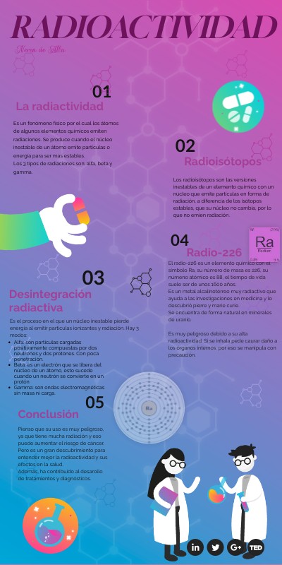 Pienso que su uso es muy peligroso, ya que tiene mucha radiación y eso puede aumentar el riesgo de cáncer. Pero es un gran descubrimiento para entender mejor la radioactividad y sus efectos en la salud. Además, ha contribuído al desarollo de tratamientos y diagnósticos.