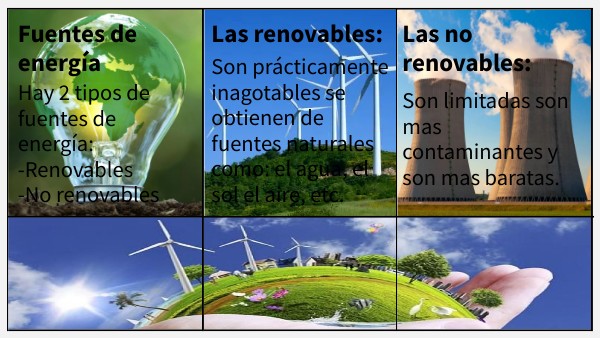 Hay 2 tipos de fuentes de energía:-Renovables -No renovables