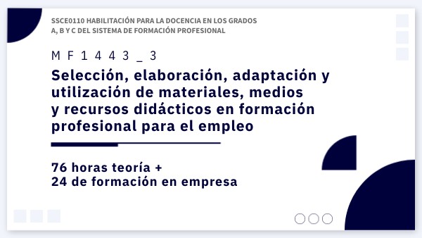 MF1443_3: Selección, elaboración, adaptación y utilización de materiales, medios y recursos didácticos en formación profesional para el empleo (90 horas)