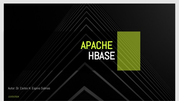 HBase es una base de datos NoSQL de tipo clave-valor o columnar distribuida que ejecuta sobre HDFS (Hadoop Distributed File System). Proporciona una capa para acceder y actualizar los ficheros de datos en formato estructurado con operaciones CRUD (Create, Read, Update, Delete).