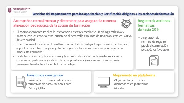 Servicios del Departamento para la Capacitación y Certificación dirigidos a las acciones de formación