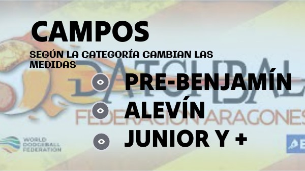 Ilustración de cada medida del campo de juego según la categoría de los jugadores de datchball.