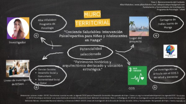 Referencias: aciones Unidas. (2015). Transformar nuestro mundo: La Agenda 2030 para el Desarrollo Sostenible. Recuperado de https://www.un.org/sustainabledevelopment/es/agenda2030. Fernández, A. (2013). El enfoque territorial: una nueva forma de entender el desarrollo local. Editorial Universitaria. Mora, L., & Rodríguez, M. (2018). La investigación acción participativa en la práctica educativa. Ediciones Narcea. Universidad Nacional Abierta y a Distancia (UNAD). (2023). Líneas de investigación de la Escuela de Ciencias Sociales, Artes y Humanidades. Recuperado de https://www.unad.edu.co