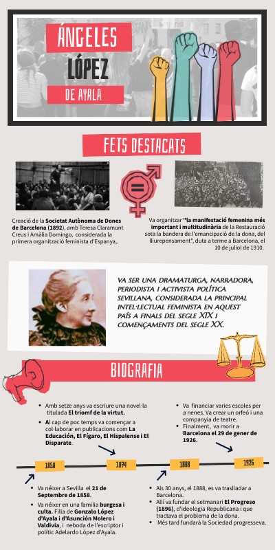 Va organitzar "la manifestació femenina més important i multitudinària de la Restauració sota la bandera de l'emancipació de la dona, del lliurepensament", duta a terme a Barcelona, el 10 de juliol de 1910.