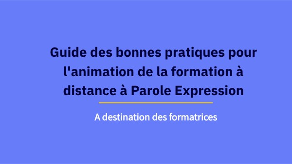 Guide des bonnes pratiques pour l'animation de la formation à distance à Parole Expression