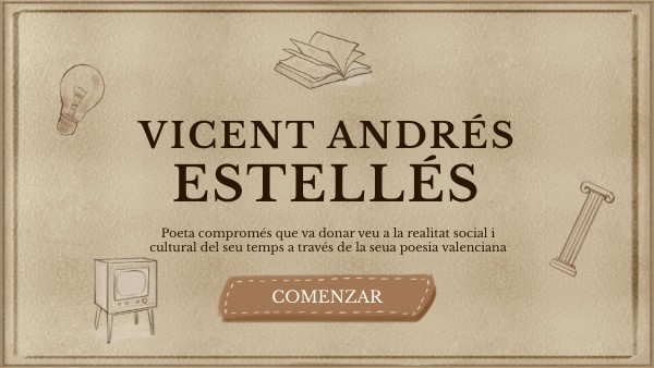 Vicent Andrés Estellés va ser un destacat poeta valencià . La seua vida va estar marcada per una profunda implicació en la cultura i la política de la seua època. Des de jove, va mostrar un interés i talent per la poesia, convertint-se en una figura central en l'àmbit literari valencià.Els seus primers versos reflectien la influència de la poesia de la Generació del 27 i de la poesia social. Durant els anys 50 i 60, Estellés es va unir al moviment cultural conegut com la Renaixença, que buscava revitalitzar la cultura i la llengua valencianes, que havien sigut marginades durant la dictadura franquista. En este context, Estellés es va convertir en una veu destacada en la defensa i promoció del valencià com a llengua literària i d'expressió cultural.
