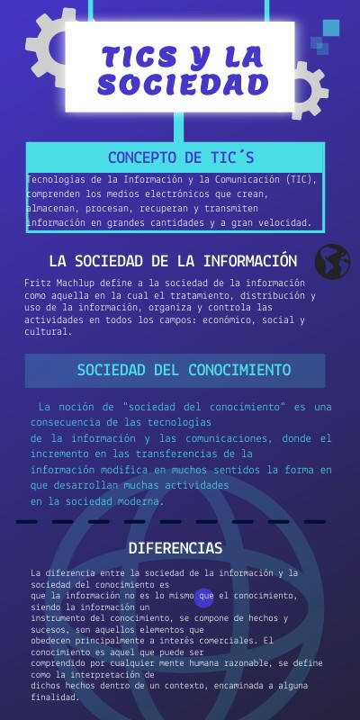 La noción de "sociedad del conocimiento" es una consecuencia de las tecnologías de la información y las comunicaciones, donde el incremento en las transferencias de la información modifica en muchos sentidos la forma en que desarrollan muchas actividades en la sociedad moderna.