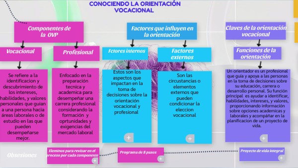 Cariño, C. (2024), nos da a entender lo siguiente: Componente vocacional: Proceso personal, reflexivo, y honesto: Implica una autoevaluación profunda de intereses, valores y habilidades personales. Orientador: Con la ayuda de un orientador, la persona reflexiona sobre todos los aspectos internos que lo impulsan a inclinarse por una seleccion, buscando un equilibrio entre cada elemento. Propuesta eduacaional vigente: Esta información debe tomar en cuenta la propuesta educacional vigente y posible, revisada de acuerdo con las posibilidades reales que tiene la persona.
