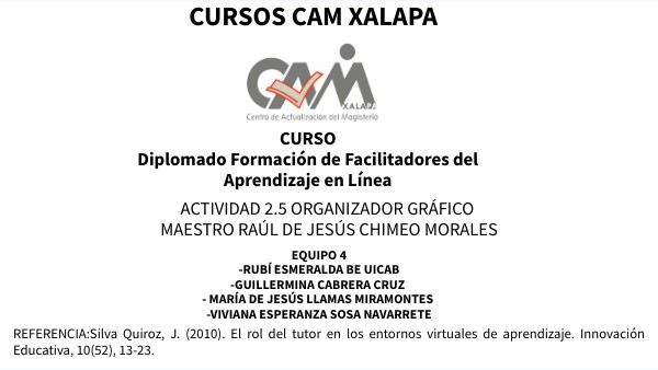 REFERENCIA:Silva Quiroz, J. (2010). El rol del tutor en los entornos virtuales de aprendizaje. Innovación Educativa, 10(52), 13-23.