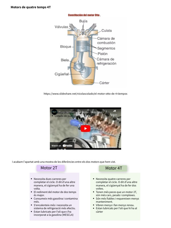 - Tenen més peces que un motor 2T, són més cars, pesats i complexes.