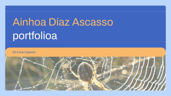Ainhoa Diaz Ascasso naiz, DBH eta LHko irakaslea. Portfolio honetan, Irakaskuntzako Gaitasun Digitala garatzeko B2 ikastaroko moduluetan egin beharreko jarduerak aurkituko dituzu. Biologiaren zale amorratua naizenez, eta ikastaroaren ikuspegia sinplifikatzearren, DBHko 3. mailako Biologiako eskola potentzial batean pentsatuz sortuko ditut lanak, zehazki, "Ekologia eta Jasangarritasuna" oinarrizko jakintzan.