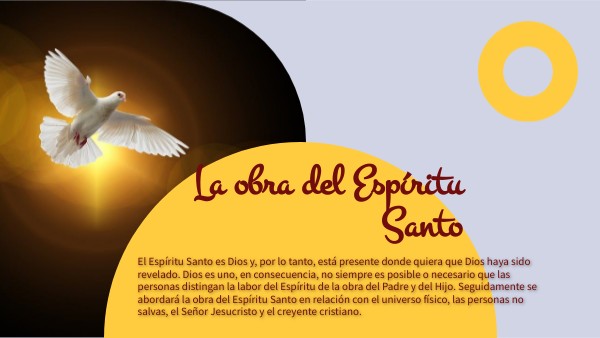 El Espíritu Santo es Dios y, por lo tanto, está presente donde quiera que Dios haya sido revelado. Dios es uno, en consecuencia, no siempre es posible o necesario que las personas distingan la labor del Espíritu de la obra del Padre y del Hijo. Seguidamente se abordará la obra del Espíritu Santo en relación con el universo físico, las personas no salvas, el Señor Jesucristo y el creyente cristiano.