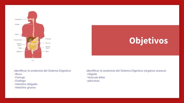 Identificar la anatomia del Sistema Digestivo-Boca -Faringe -Esofago -Intestino delgado -Intestino grueso