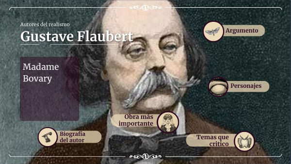 Gustave Flaubert, fue un reconocido escritor nacido en Ruán (Francia) en el año 1821, y está considerado como uno de los mejores novelistas de la literatura universal, (tras Stendhal y Balzac), quien incursionó en el género de la narrativa y cultivó el movimiento del Realismo Literario. tra de las cosas de las que se tiene conocimiento es que tan solo a los trece años de edad emprendió una de sus sueños: fundar el periódico manuscrito Art de Progrès.