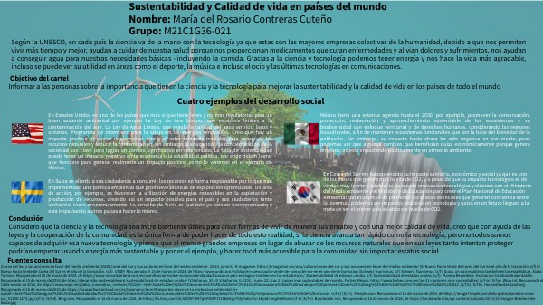 Sustentabilidad y Calidad de vida en países del mundoNombre: María del Rosario Contreras Cuteño Grupo: M21C1G36-021